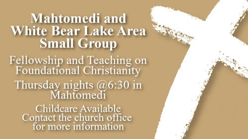 Our White Bear Lake/Mahtomedi area small group meets on Thursday evenings from 6:30-8pm. Please contact the church office to get connected for more information!