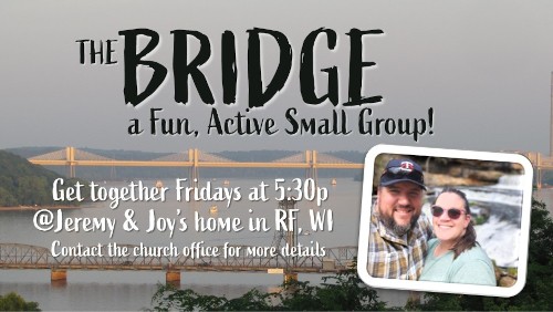 The Bridge is all about connecting people and building community by bridging life stages and interest groups within the church. We’re a fun and active group that loves spending time together through outdoor games, shared meals, and meaningful fellowship. Whether you're new to the church or have been around for a while, The Bridge offers a welcoming space, hosted by Jeremy and Joy S at their beautiful home in River Falls. Meeting every Fridays at 5:30-8:30pm. 1st & 3rd Fridays will be social/fun/games/etc., 2nd & 4th Fridays will be a Bible study.
