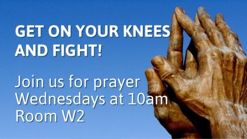 If you've got time during the week you can always join us for prayer! We have a group that prays Wednesday mornings starting at 10am in room W2. It goes for about an hour. Everyone is welcome to come in and pray!