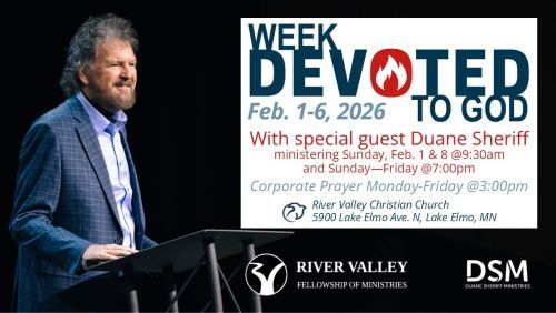 Mark your calendars for our Week Devoted to God February 1-6. There will be prayer meetings each afternoon at 3pm, and services with Duane Sheriff in the evenings at 7pm.